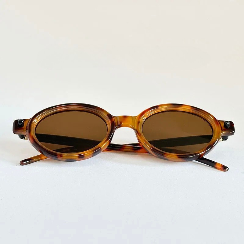 Round acetate frames and sleek patterned arms give these sunglasses a bold yet refined edge. Lightweight and polished, they blend retro charm with modern versatility. A standout accessory for any season.