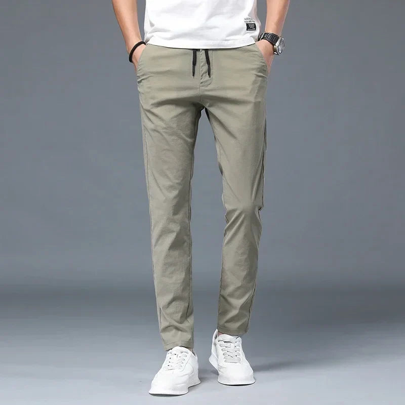 In a world that values ease without compromise, these tailored Pants deliver. Crafted from a soft cotton blend with a flexible drawstring waist, they offer day-long comfort with a clean, structured look. Whether you're heading out or staying in, they move with purpose—and always look the part.