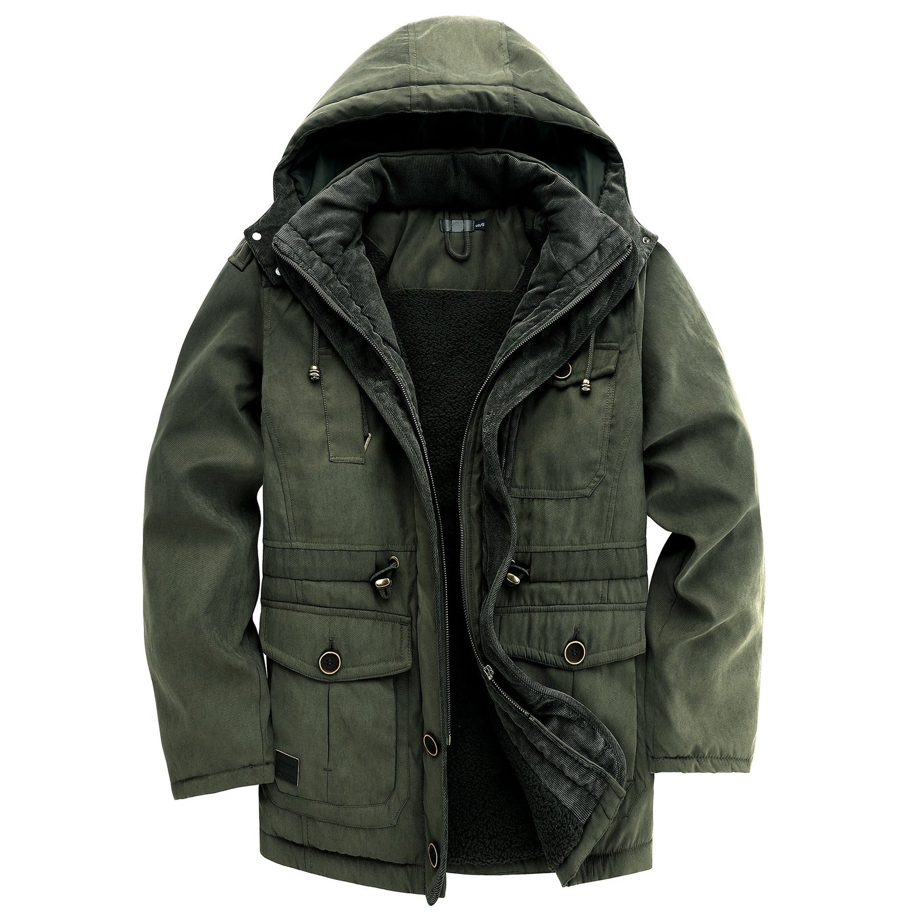 Built for cold days and long journeys. This heavy-duty jacket packs warmth with its soft fleece lining, insulated shell, and storm-ready hood. Rugged pockets, secure zippers, and a structured fit, made to handle wind, rain, and everything in between.