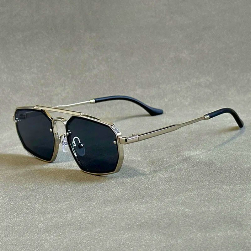 Sharp angles, bold attitude—these aren’t just sunglasses, they’re a statement. The geometric aviator frame delivers a modern edge, while the sleek metal build keeps it lightweight and comfortable. With tinted UV-protective lenses, they don’t just complete your look—they define it.