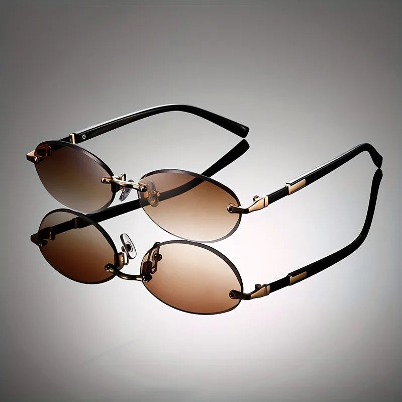 Feather-light feel, timeless oval design. These rimless sunglasses offer 400UV protection, adjustable nose pads, and anti-slip temples ideal for everyday wear and gentle on mature features.